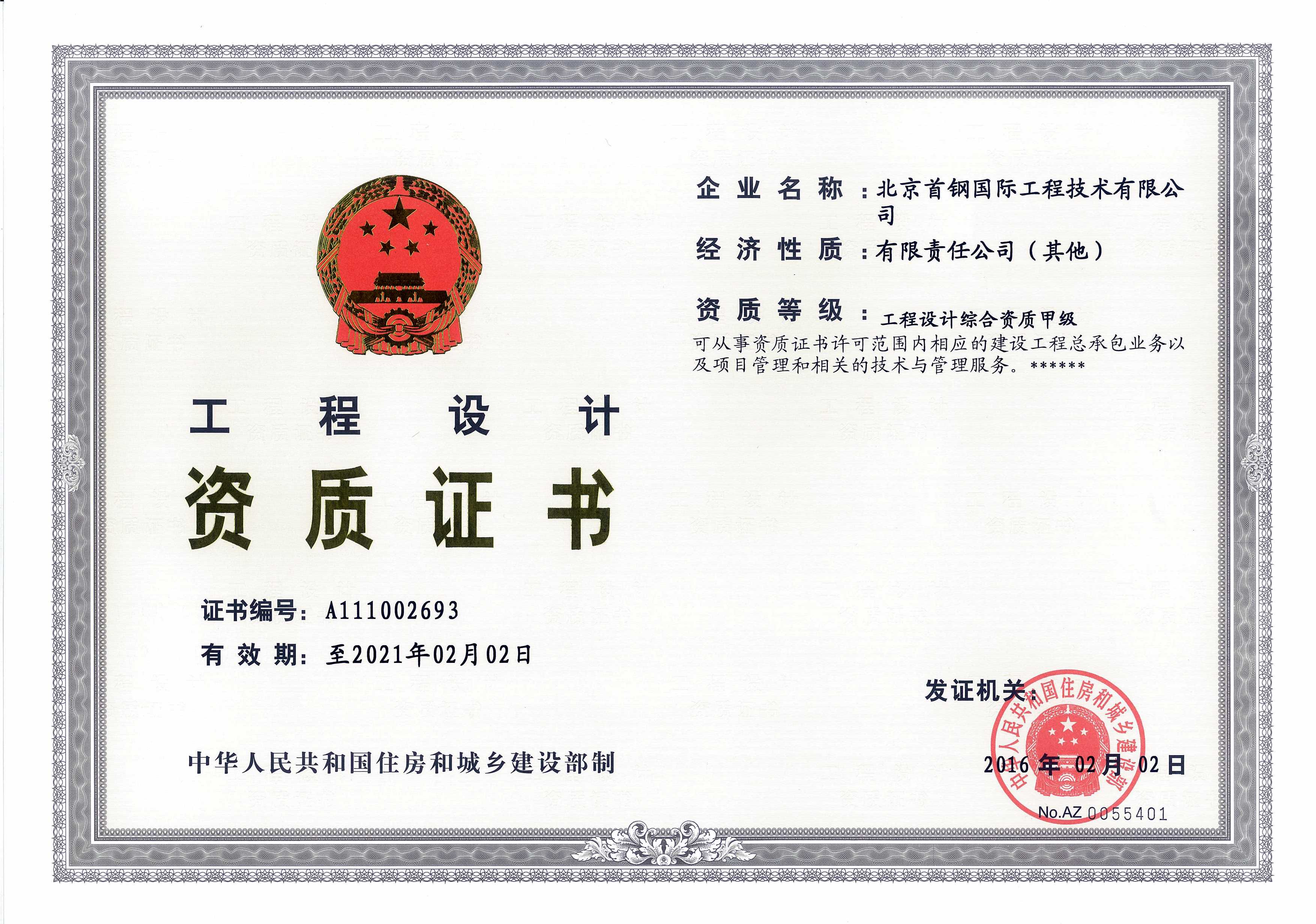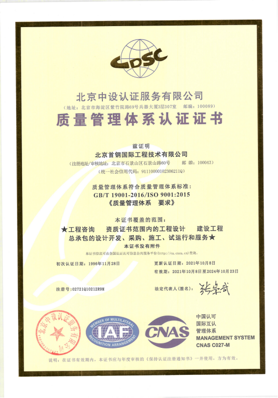 工程設計資質證書 質量管理體系認證證書 環境管理體系認證證書