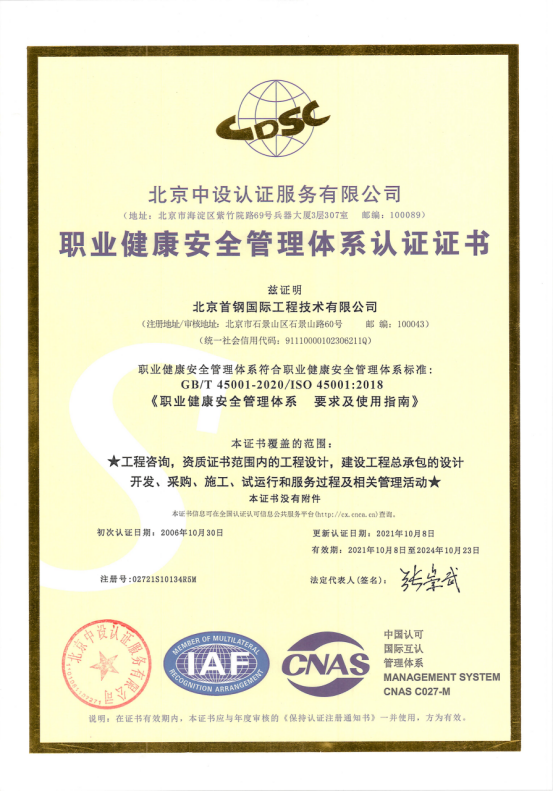 職業健康安全管理體系認證證書 工程咨詢單位甲級資信證書 工程咨詢單位乙級資信證書
