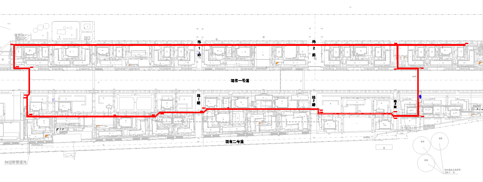 4476工程地下綜合管廊 管廊總長為3.67km,斷面尺寸4.2mX2.6m,內含采暖熱水管、洗浴熱水管、生活消防給水、室外消防給水、電力電纜及電信電纜等管線